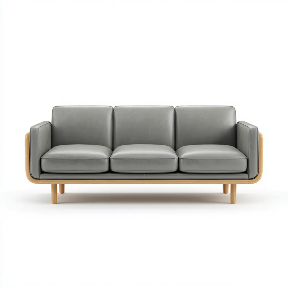 3-Sitzer-Sofa Leder 210x90x75 cm - Hellgrau - Modernes Design